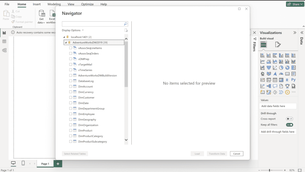 Opening the AdventureWorks Sample in Power BI
