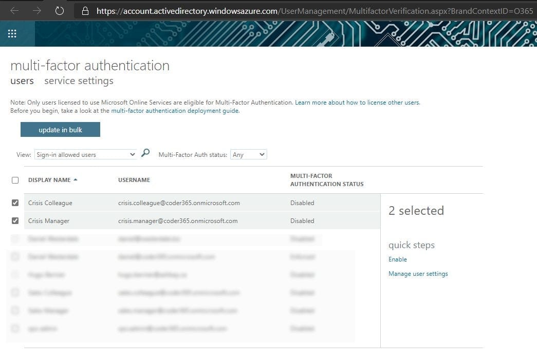 - Enable or disable MFA for each user as desired