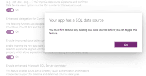 The first thing you will need to do is to Disable the Enhanced Microsoft SQL Server Connector, but that is not simple. You need to remove the SQL Connector, and any SQL tables, referencing the connector. If your Power App calls a Power Automate, which also uses the SQL Connector, then remove it as well. Note, your Power Automate will be temporarily invalid, but you can fix that before re-adding it to the Power App, in one of the last steps.
